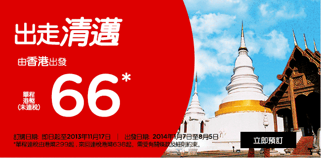 有新航線,亞航當然會推出激抵既開航復惠,香港飛清邁單程只需$66,連稅$299,來回連稅$620