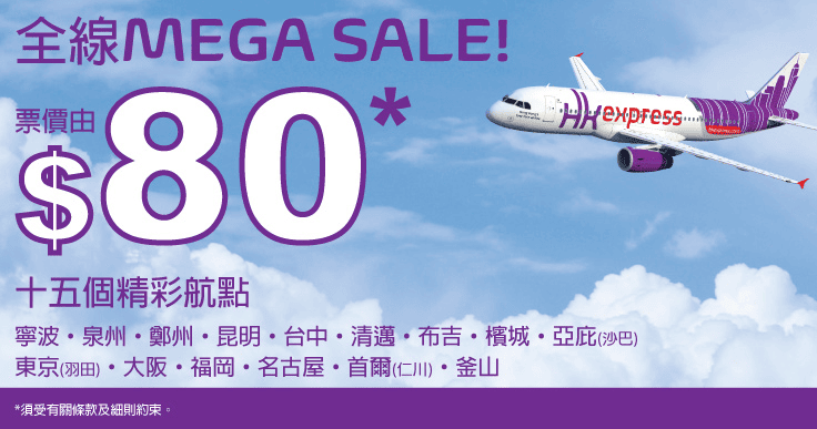 HK Express 再度推出Mega Sale!全線15個航點都有優惠!日韓台依然抵買!