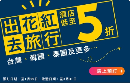 Expedia HK推出左韓國台灣東南亞等地酒店高達五折優惠