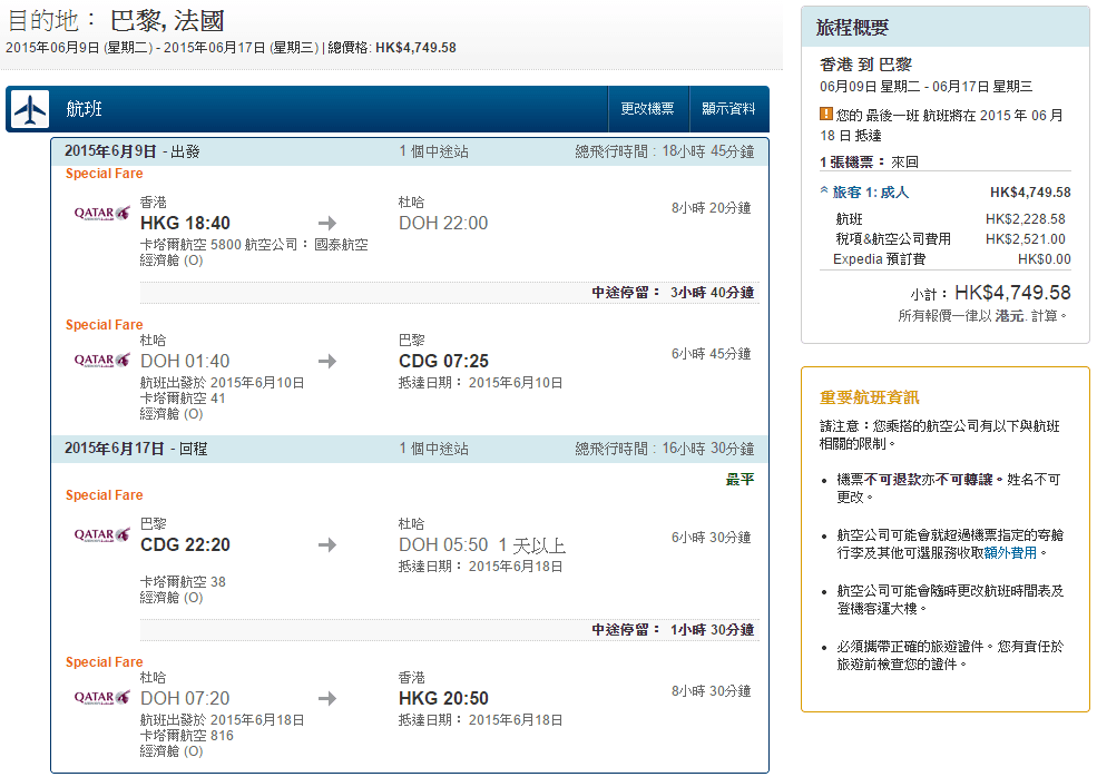 大家可以上 Expedia HK 訂呢隻優惠機票