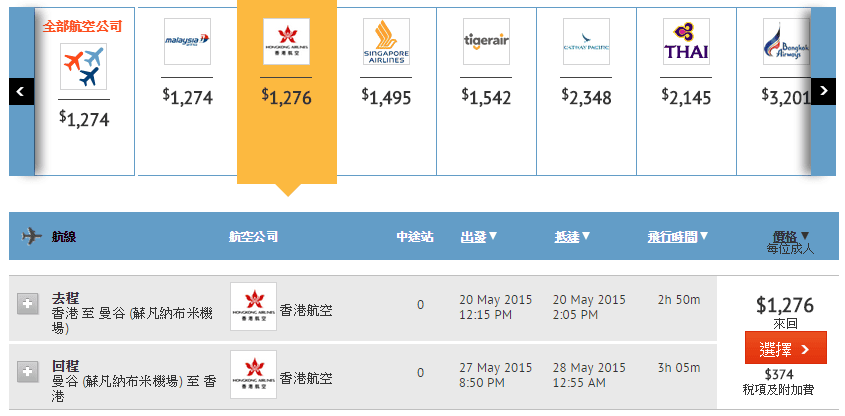 香港往返曼谷二人同行每人只需$1,276,連稅$1,651,比官網平六百蚊