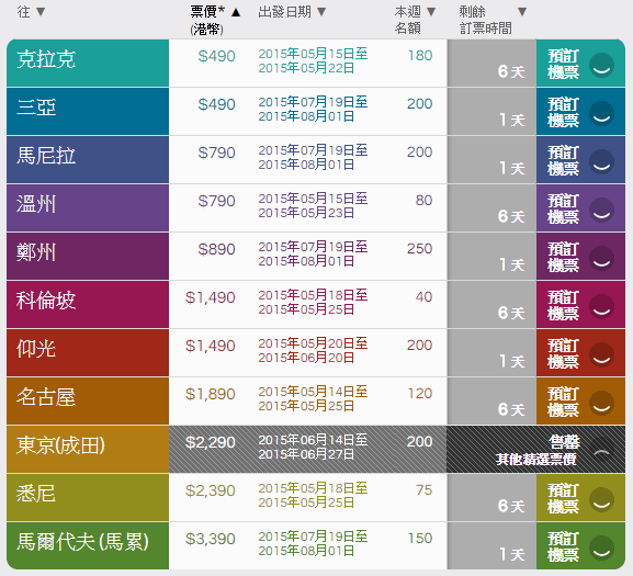確實既出發日期就要到一陣8點由國泰港龍公佈,大家準時搶飛啦