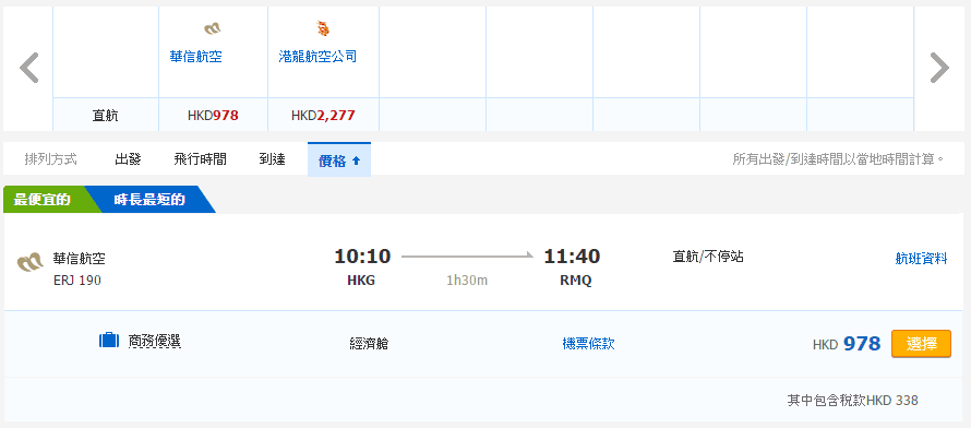 台北同高雄去程可以揀坐下午2點半前或晚上9點後出發既航班