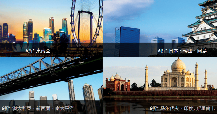 當中日本、韓國、新加坡、泰國等地既酒店都有優惠