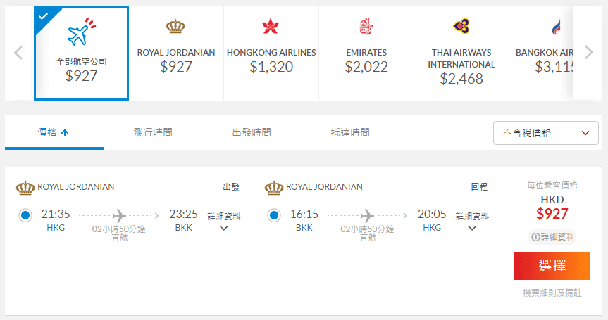 香港往返曼谷只需$927,連稅$1,385,價錢都唔錯