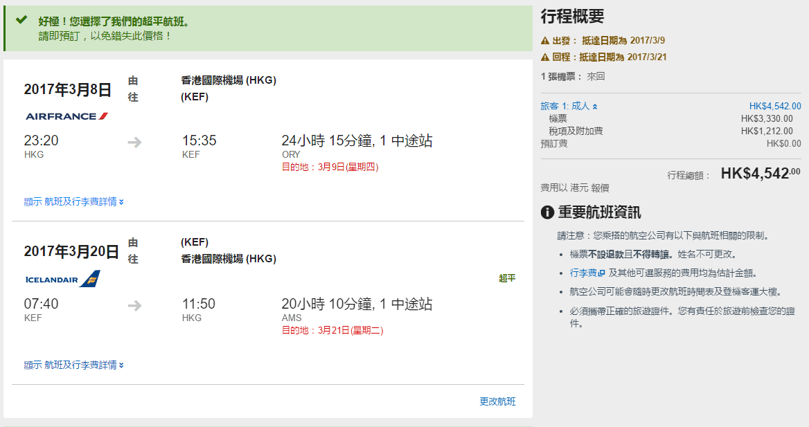 而家坐法國航空/荷蘭皇家航空+冰島航空
