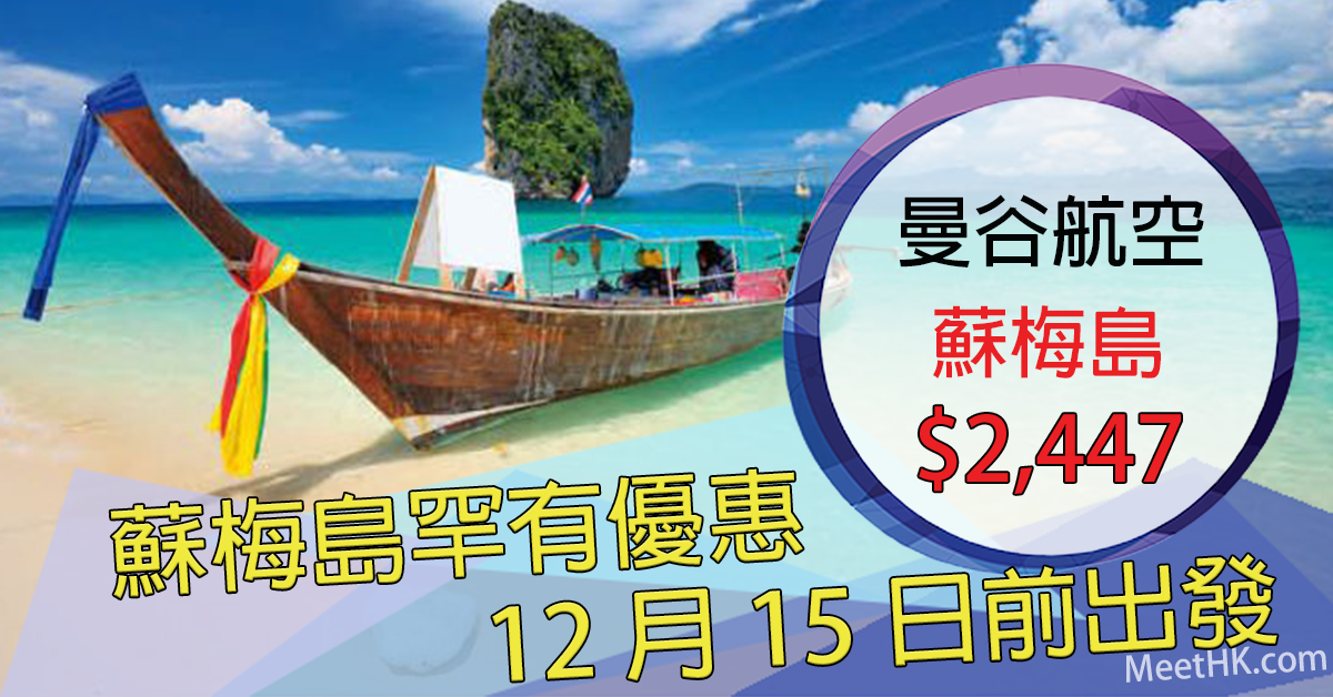 香港往返蘇梅島只需$2,447,連稅$2,900,跌穿三千大關!