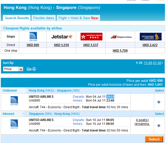 係 ZUJI HONG KONG 發現了美國聯合航空 – UNITED AIRLINES 香港往返新加坡既機票優惠