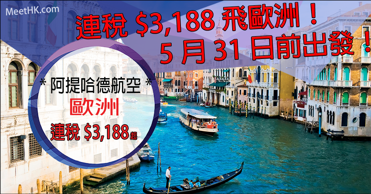 抵呀!連稅$3,188飛歐洲!明年5月31日前出發!香港往返歐洲各地連稅只需$3,188起 – 阿提哈德航空 (優惠至10月24日)