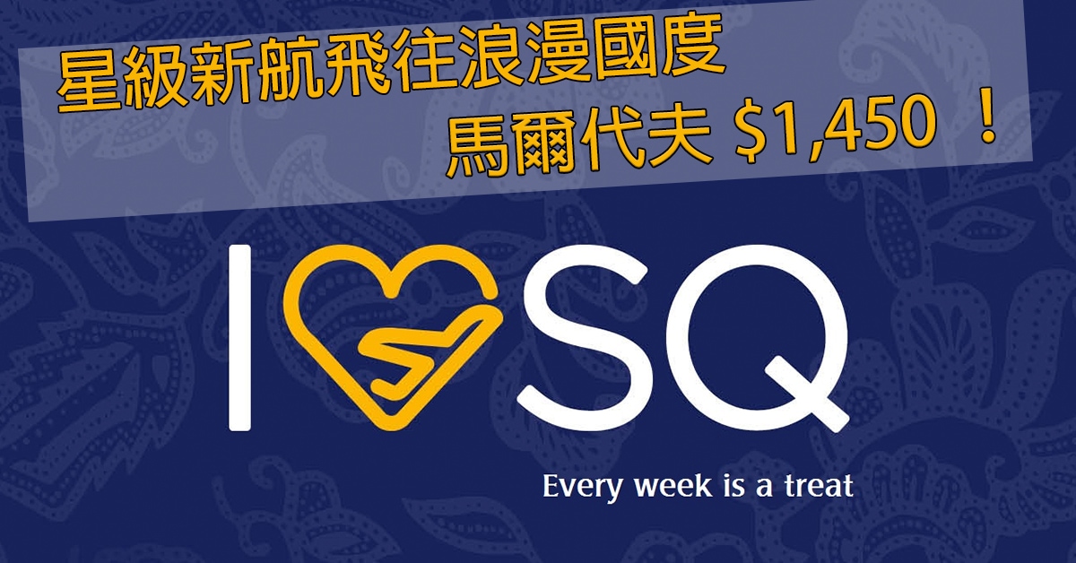 限時48小時!新航星級優惠!5月31日前出發!香港往返馬爾代夫二人同行每人只需$1,450 – 新加坡航空 (優惠至3月3日)