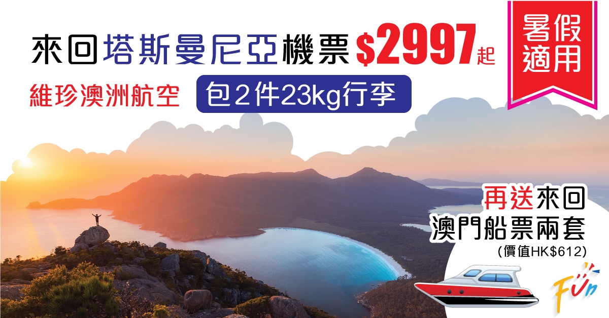 平飛塔斯曼尼亞睇靚爆仙境!暑假都有平!11月30日前出發!維珍澳洲航空香港往返塔斯曼尼亞只需$2,997起,兼送來回澳門船票兩套(價值$612)–Funfun.travel (優惠至4月16日)
