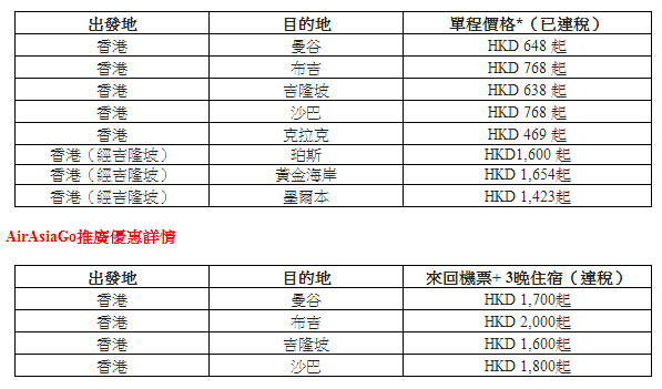 今日同大家介紹亞航3月至7月期間出發既優惠