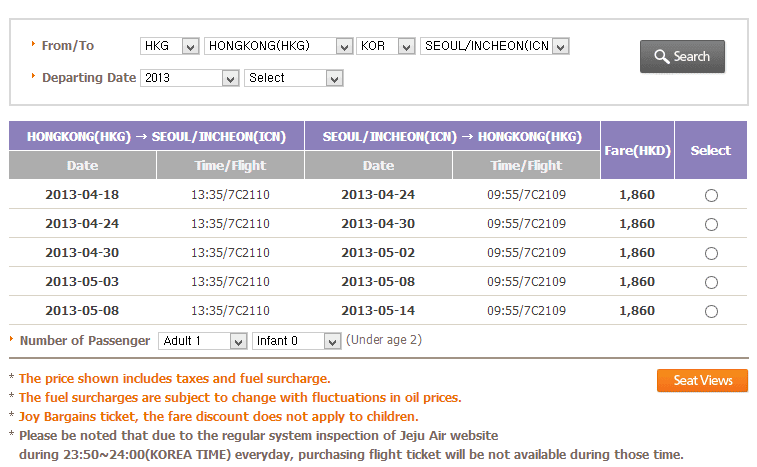 香港往返首爾只需 $1,000,連埋稅都只係$1,860,單睇價錢的確抵