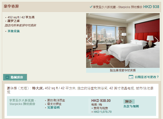 澳門喜來登金沙城中心酒店豪華客房每晚只需$938,計埋5%稅項同10%服務費就$1,079
