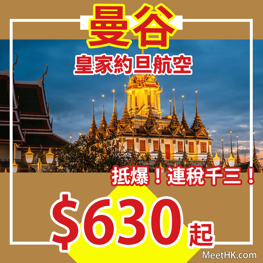 香港往返曼谷只需$630起,連稅$1,312起,真係抵!