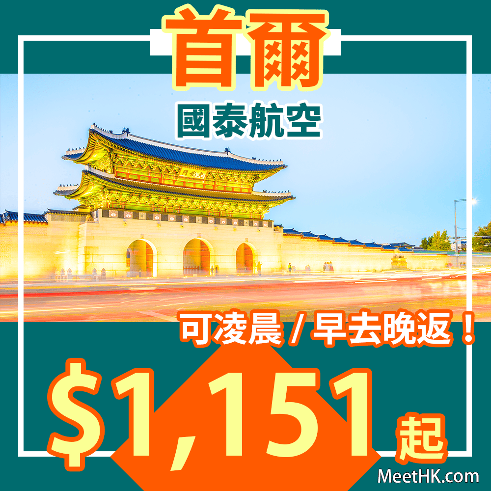 國泰飛首爾再減!連稅千八!減近四百!可凌晨/早機去晚機返!香港往返首爾只需$1,151起 – 國泰航空 (優惠至9月30日)