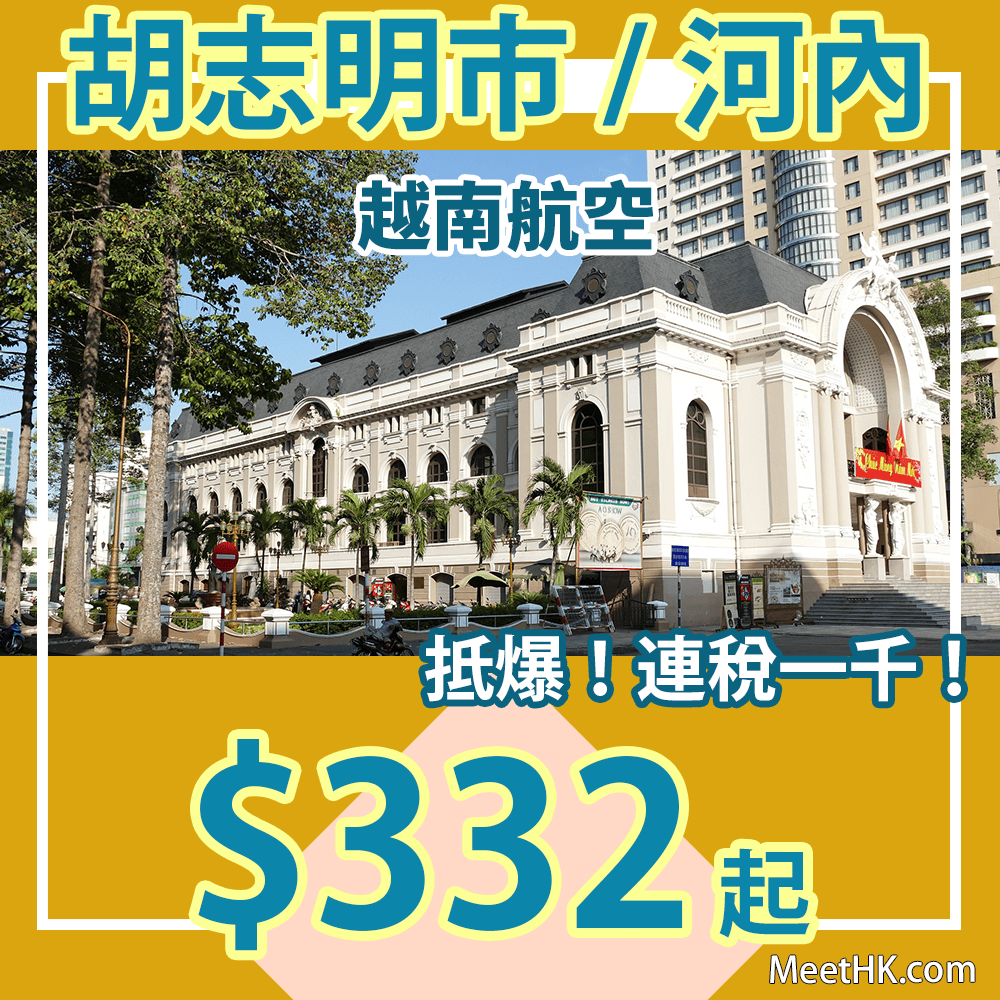 連稅胡志明市$1,081起、河內$1,108起,超抵!