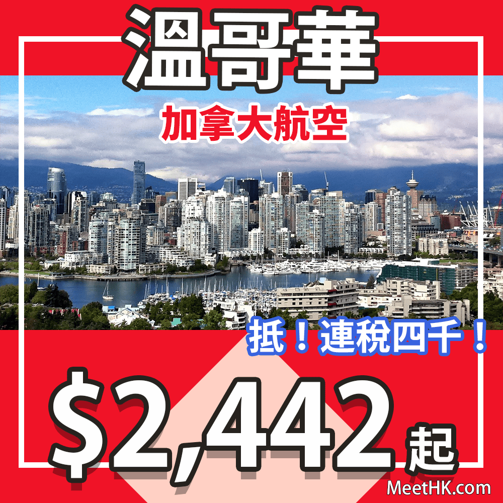 抵!連稅四千!加航直飛溫哥華優惠!香港直航往返溫哥華只需$2,442起 – 加拿大航空 (優惠至12月9日)