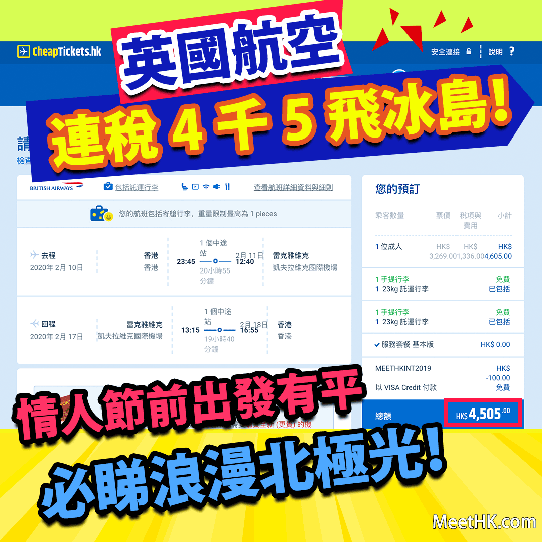 嘩!英航飛冰島連稅4千5!必睇浪漫絕美北極光!香港往返冰島雷克雅未克只需$3,139起 – 英國航空 (優惠至12月31日)