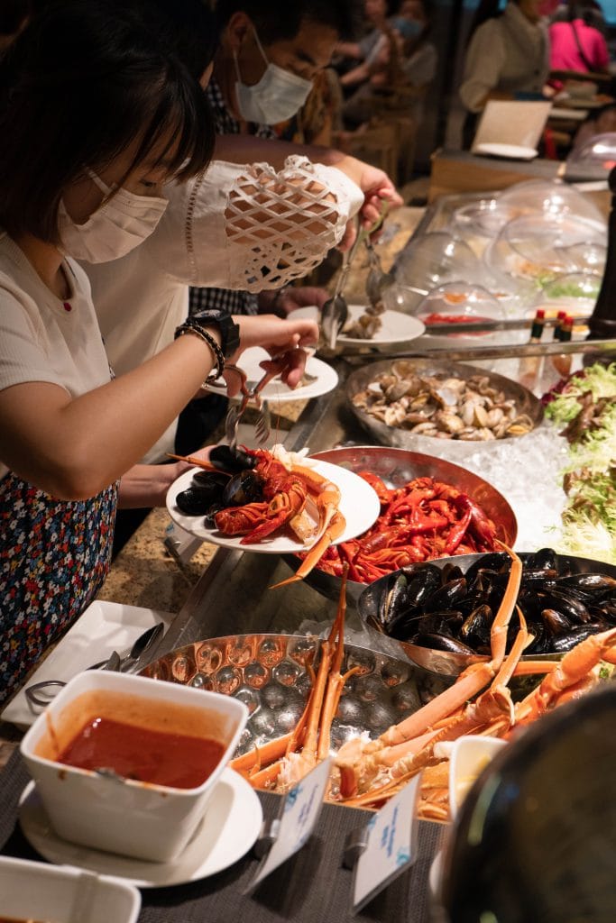自助餐喺酒店嘅LIS Café享用,食物款式都幾多,海鮮類都係任食架!!有蜆、蝦、長腳蟹、青口、小龍蝦等等~