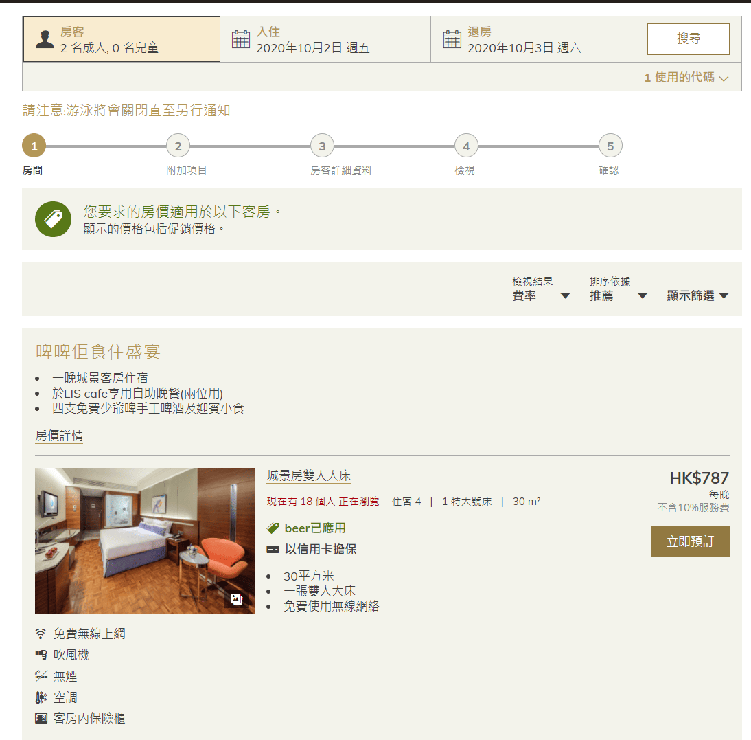 (手機版要click下圖圓圈”即時預訂”先可以search到”啤啤佢食住盛宴”住宿+自助晚餐優惠)