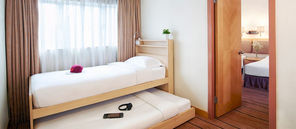 家庭客房(Family Room)有成460平方呎,係尊貴客房嘅2倍面積。最多可以4人入住,一班朋友或者一家大細住返晚都唔怕逼!