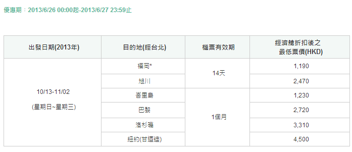 呢隻優惠將會係星期三 (6月26日0:00am) 先開始,有興趣可以上長榮航空官網睇下有咩心水航班,計劃一下行程先