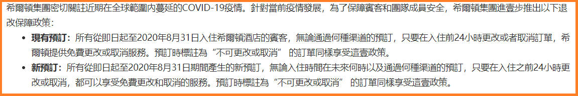 退改保障政策:https://www.hilton.com.cn/coronavirus/hk/
