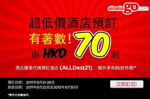 亞航旗下 AirAsiaGo 預訂酒店85折優惠 (9月21日至26日)