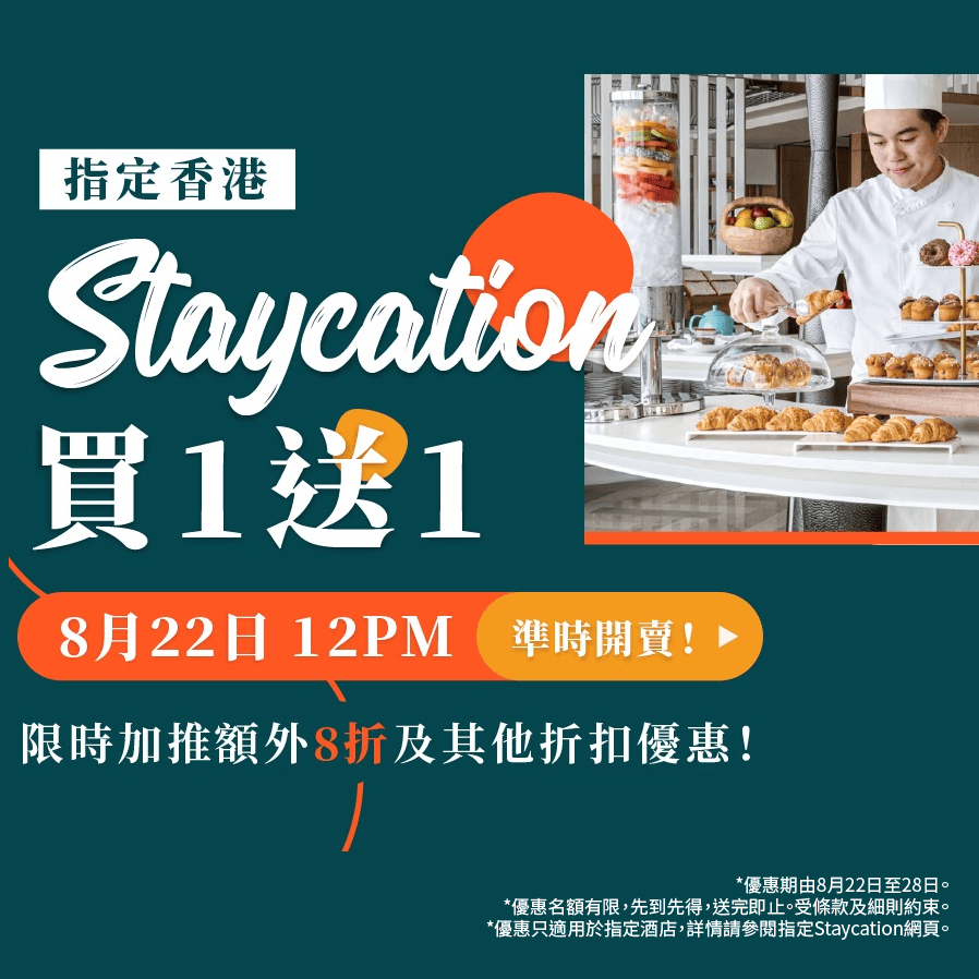 Klook會係一陣(8月22月)中午12時推出5間香港酒店Staycation限時買1送1優惠