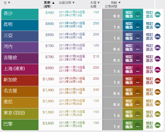 估計當中有3個城市係9月頭出發,另外3個城市係11月出發,其餘5個城市係黎緊兩星期內出發既指定日子航班Last Minute優惠