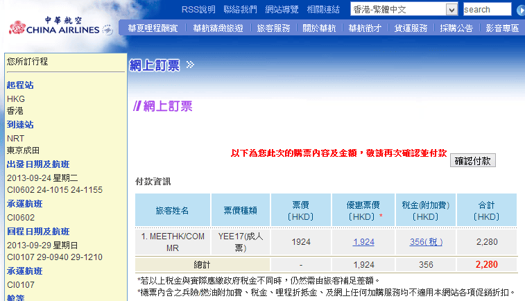 如果打算中停台北既話,大家訂完之後可以打上華航客服中心2868-2299辦理中停台北,只須補付台北離境稅約$80,當然亦都要視乎返機位而定。