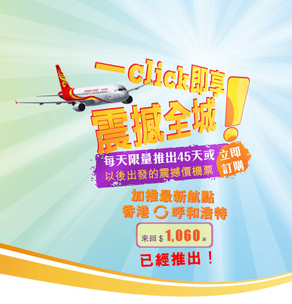 更重要既係呢條線推出左”一click即享”優惠,香港直航往返呼和浩特只需$1,060,連埋稅都只係$1,695,紫荊會會員再減$50,即係只需$1,645