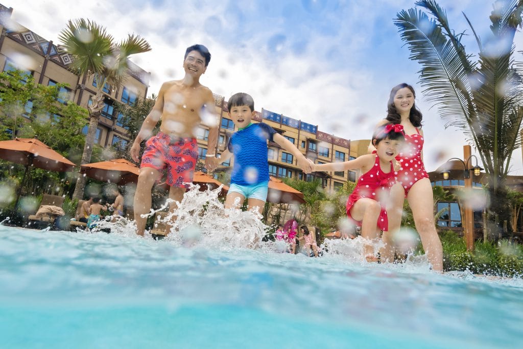 玩完一輪比較靜態嘅活動,黃昏時段趁冇咁曬去酒店泳池游水就啱晒!香港迪士尼樂園酒店嘅泳池仲有水上設施,啱晒小朋友;迪士尼探索家度假酒店都唔差,泳池靠近海邊,可以聽住海浪聲游水。