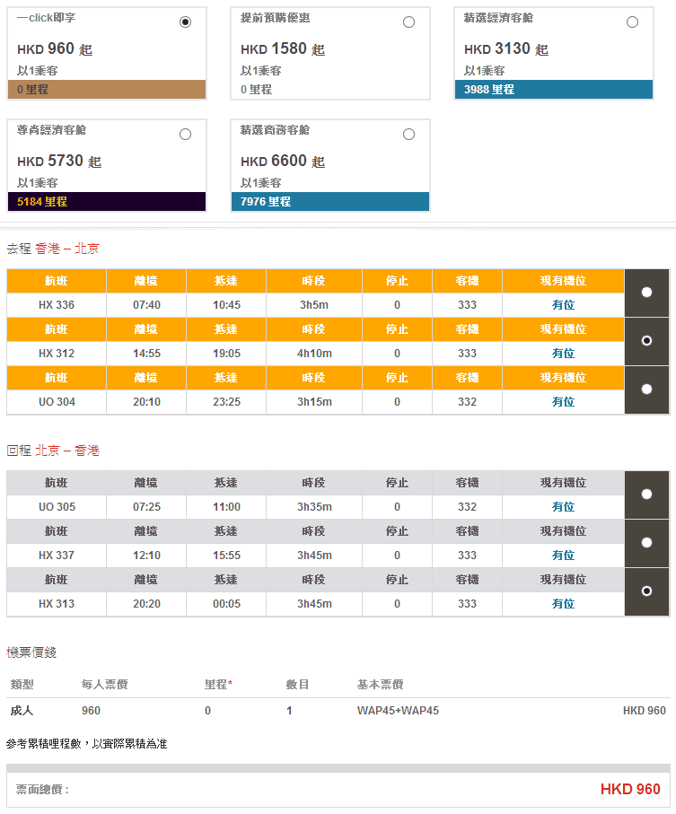 香港往返北京只需$960,連稅$1,595,紫荊會會員再減$50,即係只需$1,545