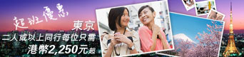 即日起至9月30日期間,訂購香港東京來回機票,二人或以上同行,每位可享低至港幣2,250元!