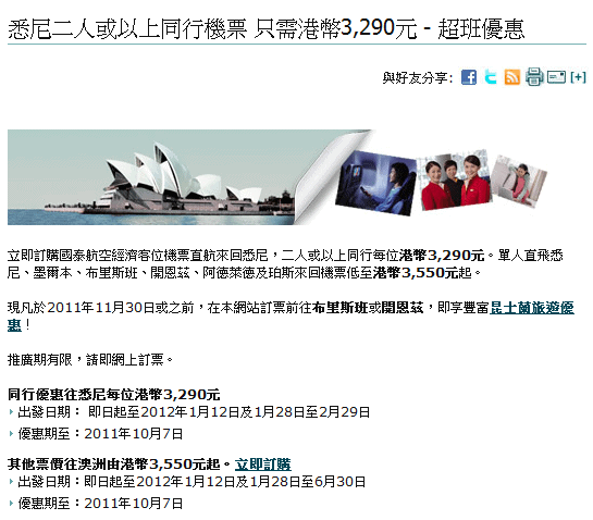 同行優惠往悉尼每位港幣3,290元