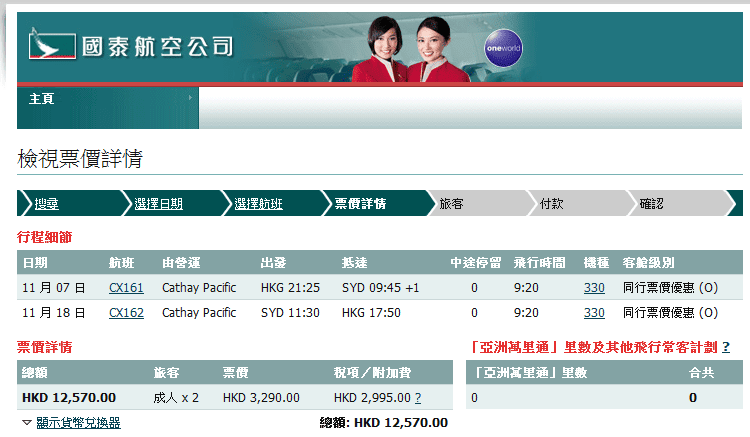 - 航班限制:香港-悉尼適用於CX161;悉尼-香港適用於CX162。