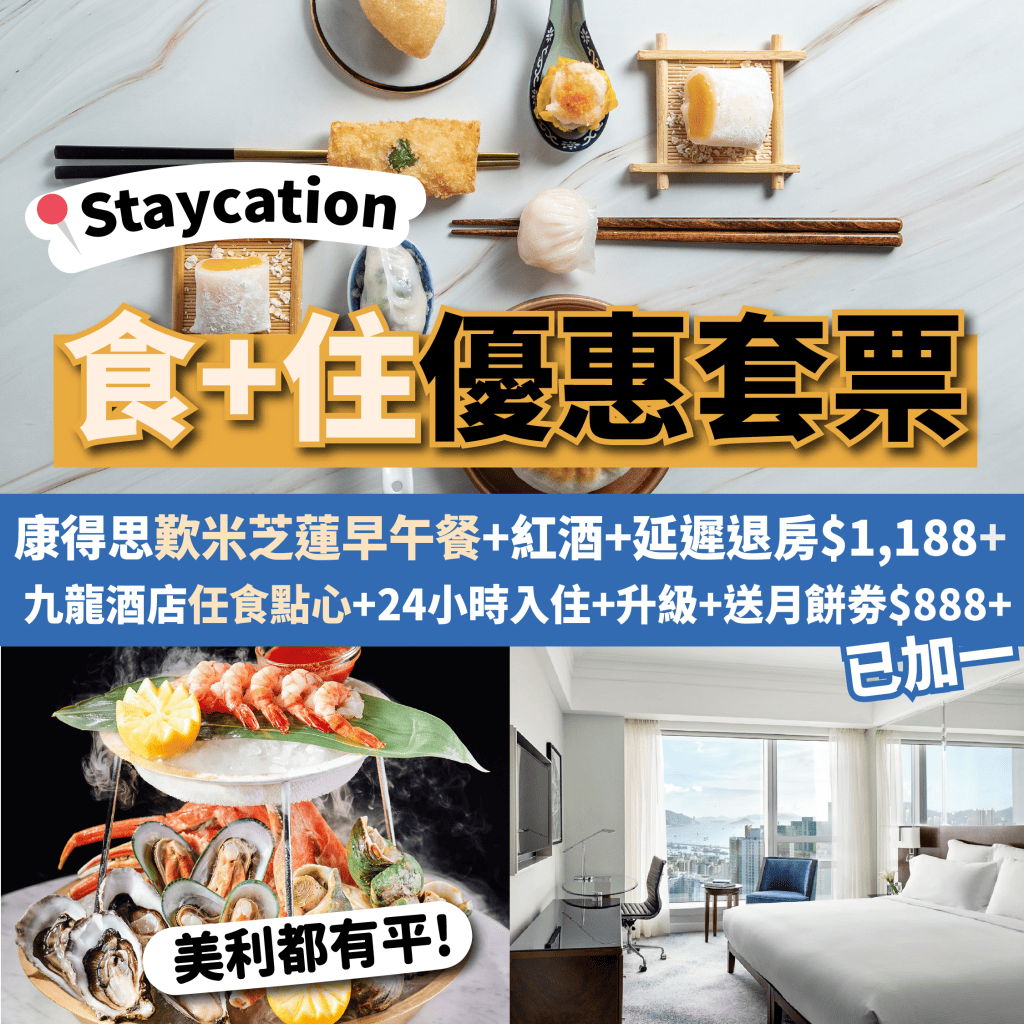 【Staycation優惠攻略】美食住宿!又食又住!康得思Cordis歎米芝蓮「明閣」早午餐+紅酒一晚連服務費$1,188起!九龍酒店$888包任食點心+24小時入住+升級客房+送月餅劵!