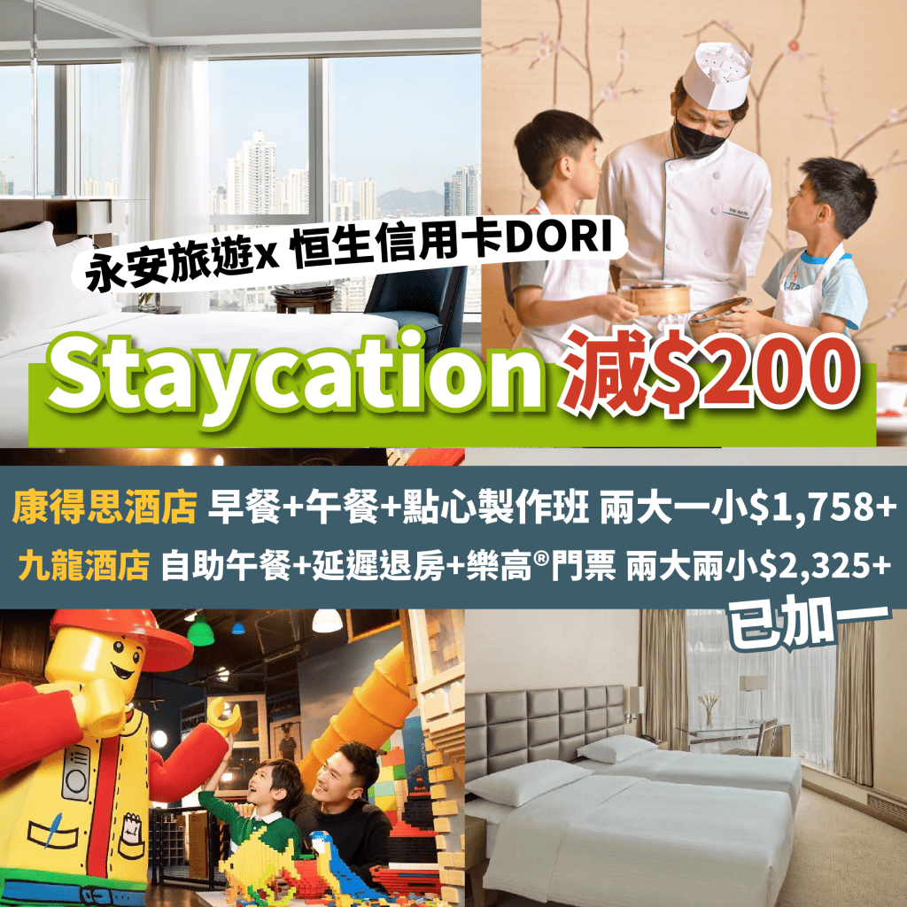 【永安旅遊 x 恒生信用卡DORI 優惠】Staycation唔只飲食咁簡單!仲可以減$200兼參加體驗活動!入住康得思酒店包早餐+午餐+點心製作班,兩大一小一晚連服務費都係$1,758起!