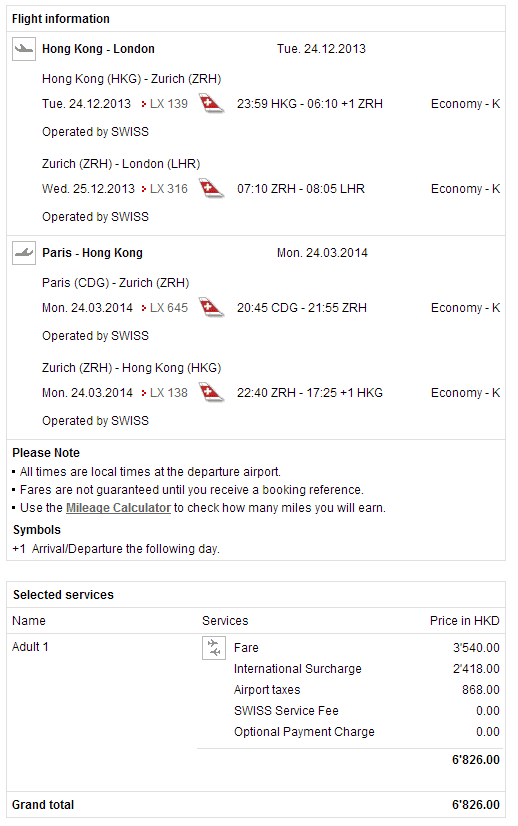 直飛蘇黎世反而比轉多程機去其他歐洲城市仲要貴,機票$4,800,連稅$7,027