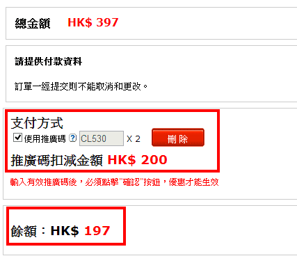 大家記住要係付款頁面輸入推廣碼 “CL530” 先可以每位即時減$100 (如下圖)