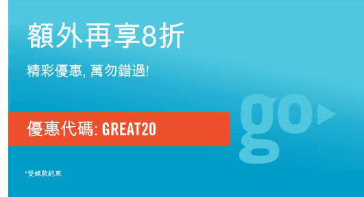大家憑以下代碼在 RatesToGo 預訂酒店,可享受額外20%的優惠 (2013年10月13日前預訂有效, 於2013年12月31日前入住)