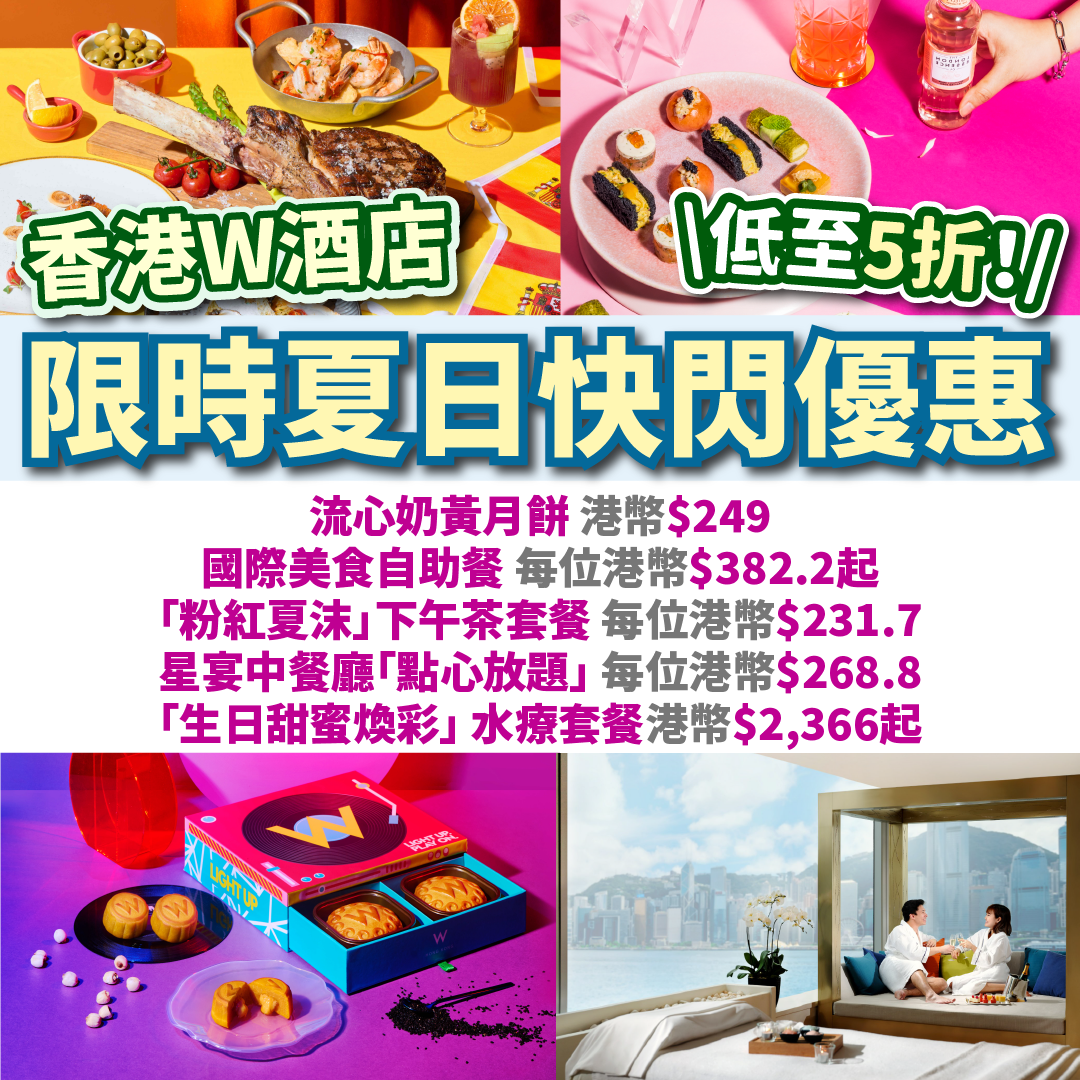 【香港W酒店限時夏日快閃優惠】低至5折!必搶推介:KITCHEN餐廳自助午餐每位港幣$382起(原價港幣$546);流心奶黃月餅每盒港幣$249起(原價港幣$498)!仲有其他精選餐飲同水療SPA優惠!