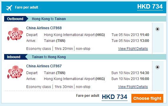 一人成行!11月30日前出發!香港往返台南$734、台北$748起、高雄$822起 – 中華航空 (優惠至10月1日)