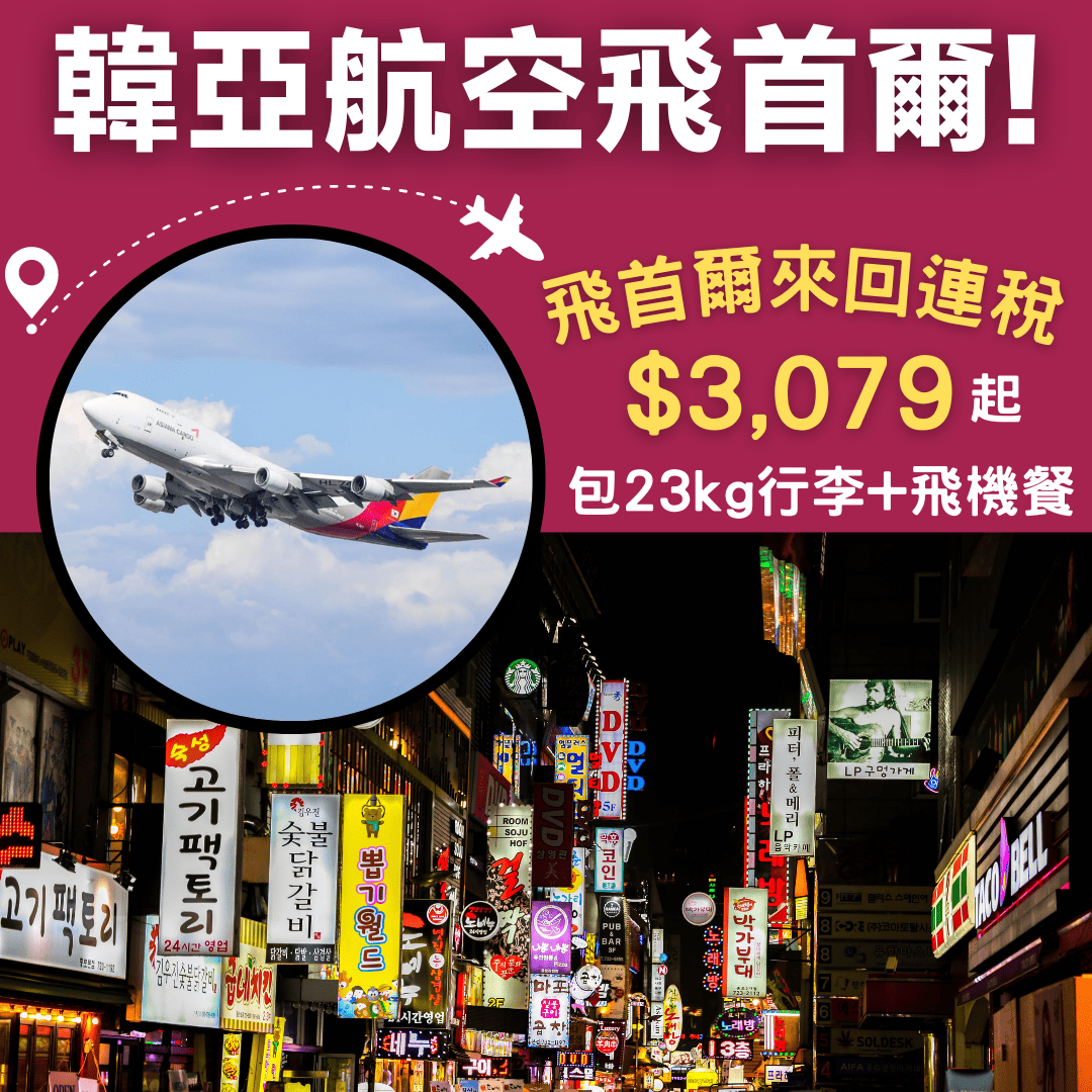 香港飛首爾來回連稅只需$3,079起