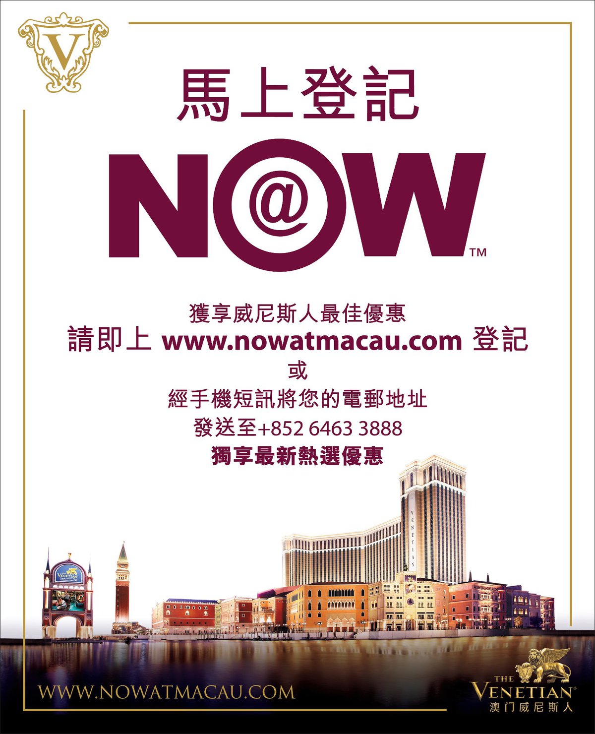 另外推介大家登記加入澳門威尼斯人的NOW@ 即可獲得澳門威尼斯人既第一手優惠資訊, 無論住宿套票, 餐飲, 以至娛樂表演都享有最佳優惠。