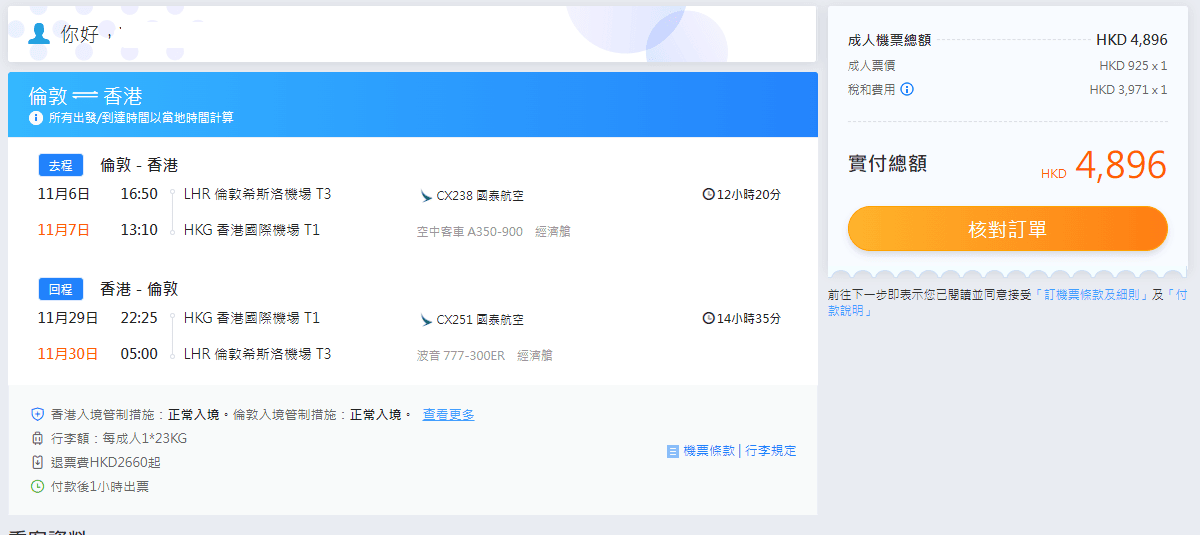 英國離境稅一向貴,加埋而家燃油附加費都貴,連稅四千八直航返港的確幾抵!
