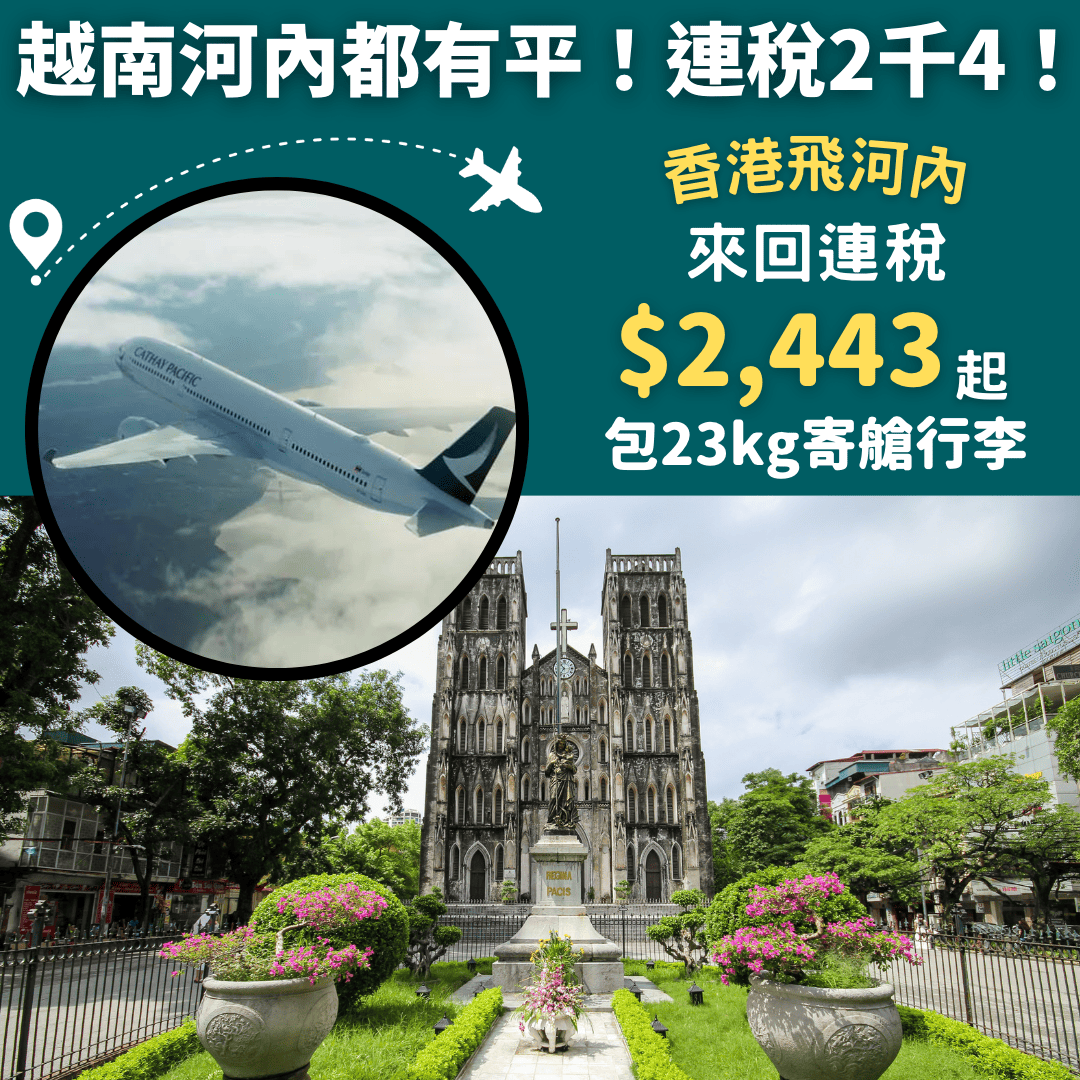 國泰飛河內都有平!連稅2千4!包23kg行李!香港飛河內來回連稅$2,443起 – 國泰航空