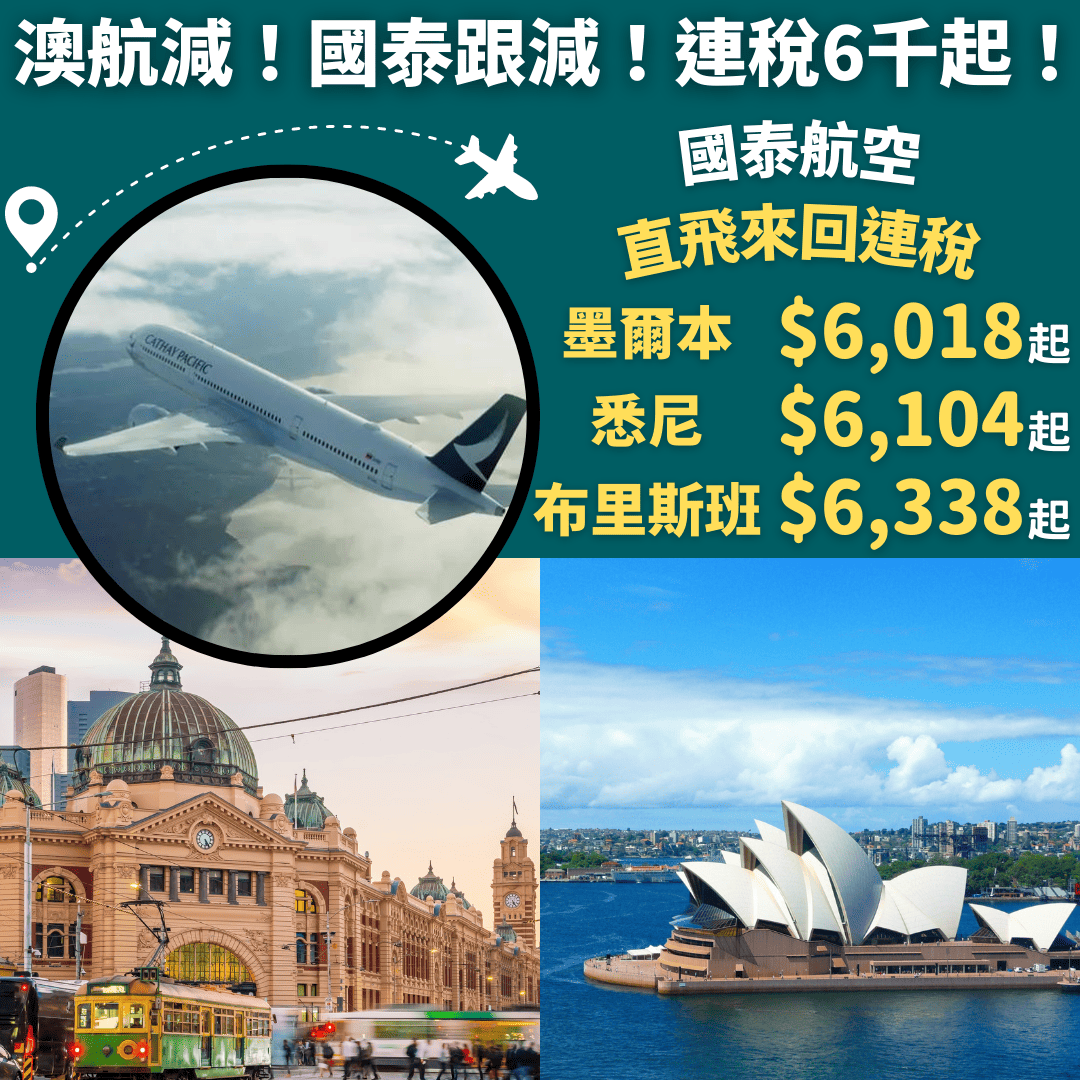 澳航減(詳情:https://www.meethk.com/124238)!國泰當然跟減!連稅6千起澳洲!
